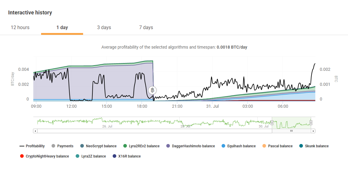2018年07月31日 Nicehashつながらないpart2 うーん、なんか、昨日のDDos攻撃以来Nicehashが安定しません。12:00あたりから、ほとんど死亡的な・・・ウチだけかな?よくよくみると、今度はサーバが落ちてるんじゃなくてDaggerHashimoto(Ethhash=イーサリアム)のプールに接続拒否。されるみたいなんで。DaggerHashimotoアルゴリズムを選択除外して振り分けてもらいました。あまりにも低すぎる収益・・・GPUマイニングに明日はあるのか?(;^_^Aありがとうございました。 「マイニング」カテゴリの最新記事